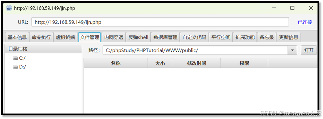 分析如上运行结果,提示"上传成功,请检查URL:http://192.168.59.149/ljn.php",这说明木马已经上传成功,此时木马的URL地址为http://192.168.59.149/ljn.php。