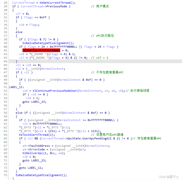 KiContinueEx通过flag参数决定是否执行下一个用户APC,或者执行原始的用户线程