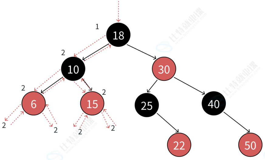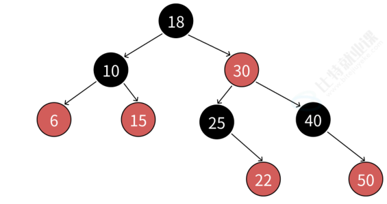 - 对于任意一个结点,从该结点到其所有NULL结点的简单路径上,均包含相同数量的黑色结点