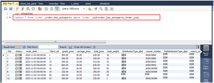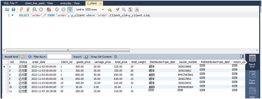 select `order`.* from `order`,y_client where `order`.client_cid=y_client.cid;