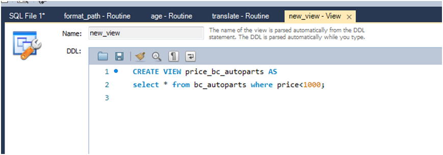 create view price_bc_autoparts as select * from bc_autoparts where price<1000;