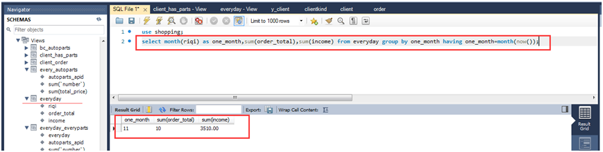 select month(riqi) as one_month,sum(order_total),sum(income) from everyday group by one_month having one_month=month(now());