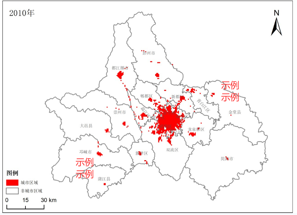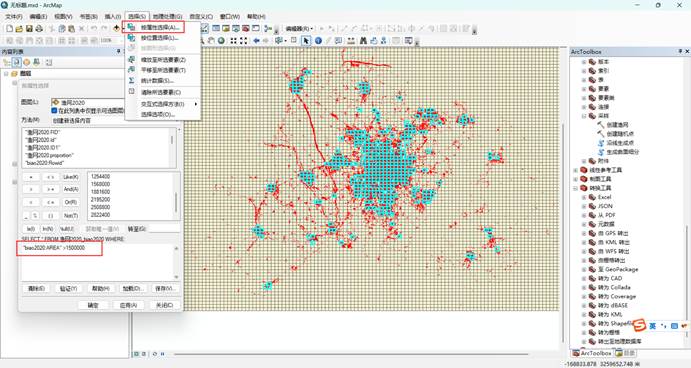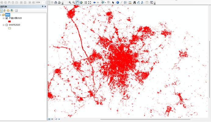 7.按照面积属性值来筛选一定的不透水面的比例,从而确定城市范围,从而确定城市边界。