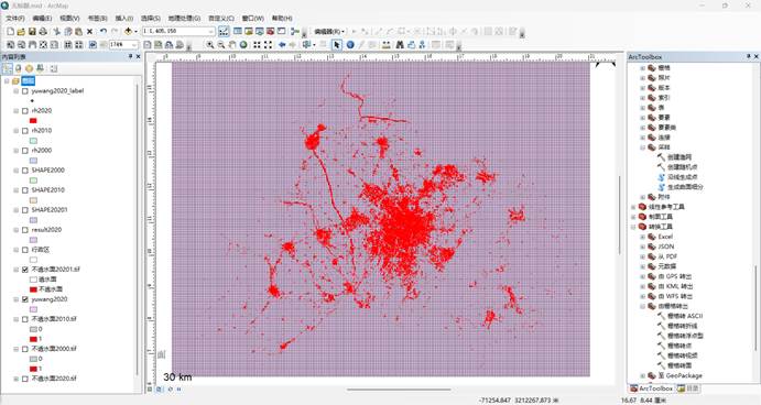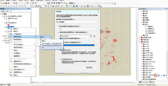 6.得到的表格结果与渔网进行关联,新建字段来进行不透水面的比例,连接的时候一定要注意字段的匹配,我已经试错过了,前期匹配的一坨