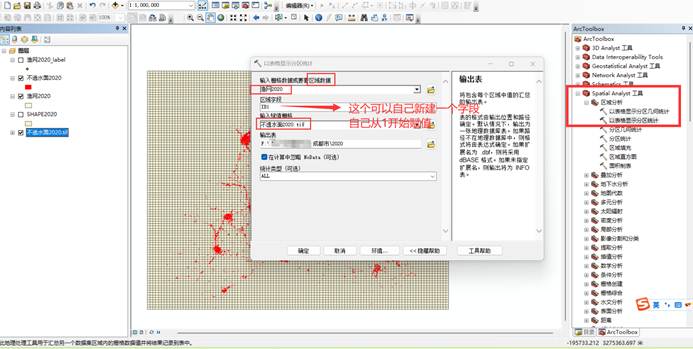 5.用生成的渔网面,统计不透水面的比例【Spatial Analyst】【区域分析】【以表格显示分区统计】