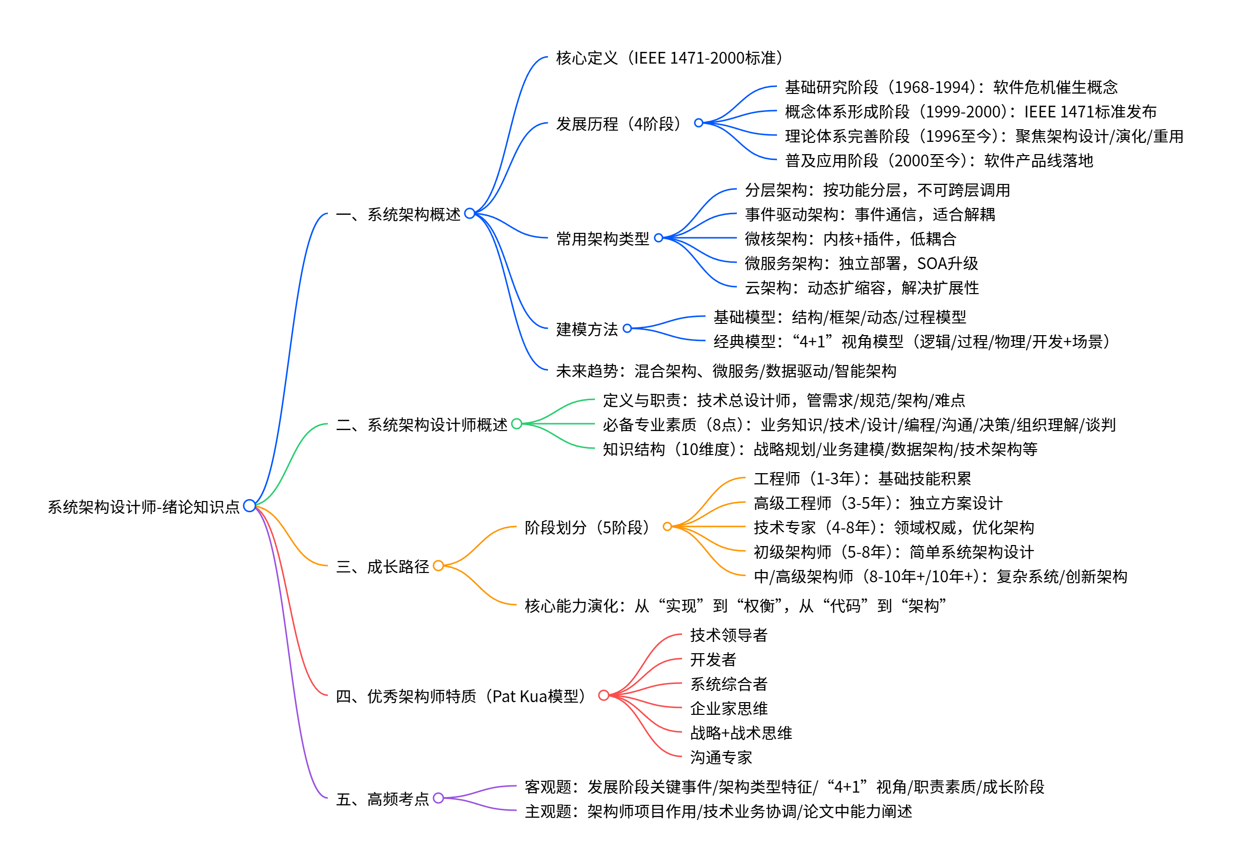 - 经典模型:"4+1" 视角模型(逻辑、过程、物理、开发 + 场景视角),需记住 5 个视角的核心关注方向。