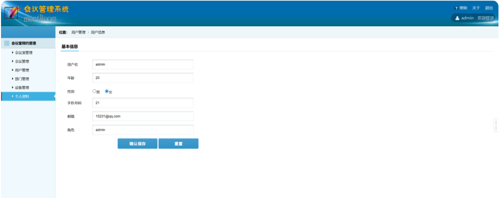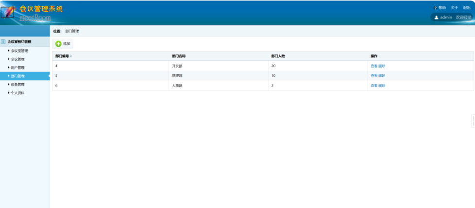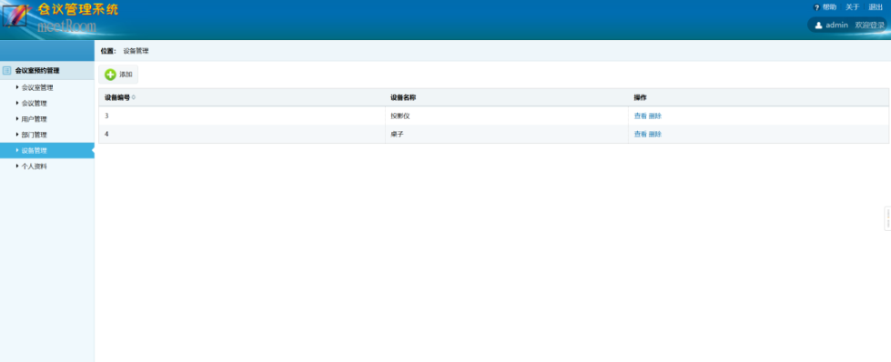 本系统功能包括会议室管理、会议管理、用户管理、部门管理、设备管理、个人资料