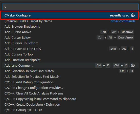 Ctrl+Shift+P)输入并执行CMake: Configure命令