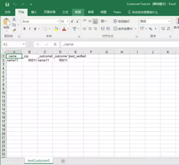 由于Excel表格中第二行的_name和_zip的值与_outcome0和_outcome1的值均不相等,执行数据源第二行输入值时断言失败。