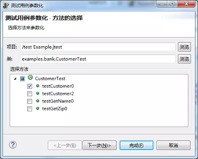 2 2.对PackageExplorer视图中选择任一具有输入值的测试用例,右键选择>>Jtest>>提取参数化测试用例,看到如下图所示界面: