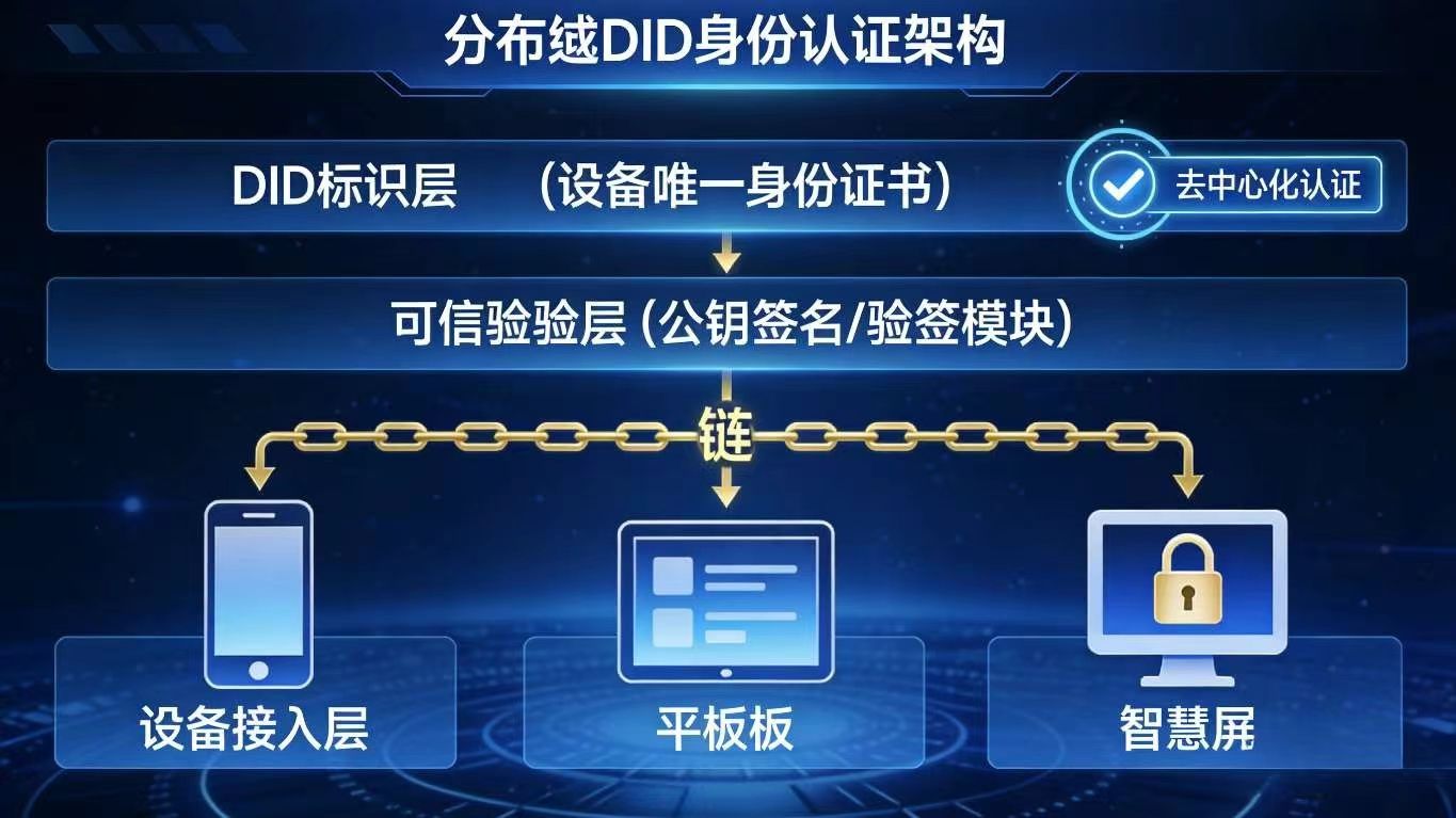 - 身份可信化:基于分布式 DID 实现设备身份唯一标识与可信校验,杜绝陌生设备冒充接入;