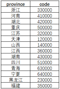 数据会以csv表格的形式,保存在运行脚本的目录下,数据标签包括:province(省名称)、code(省编码);
