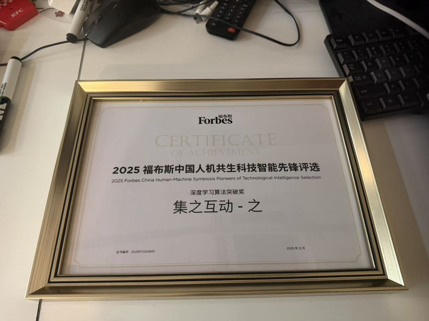 集之互动AI数字人"之"获评2025福布斯中国人机共生科技智能先锋评选《深度学习算法突破奖》