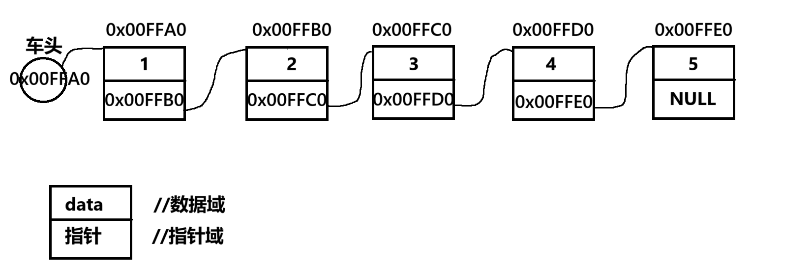 //接下来的代码的是实现单向不带头节点不循环链表