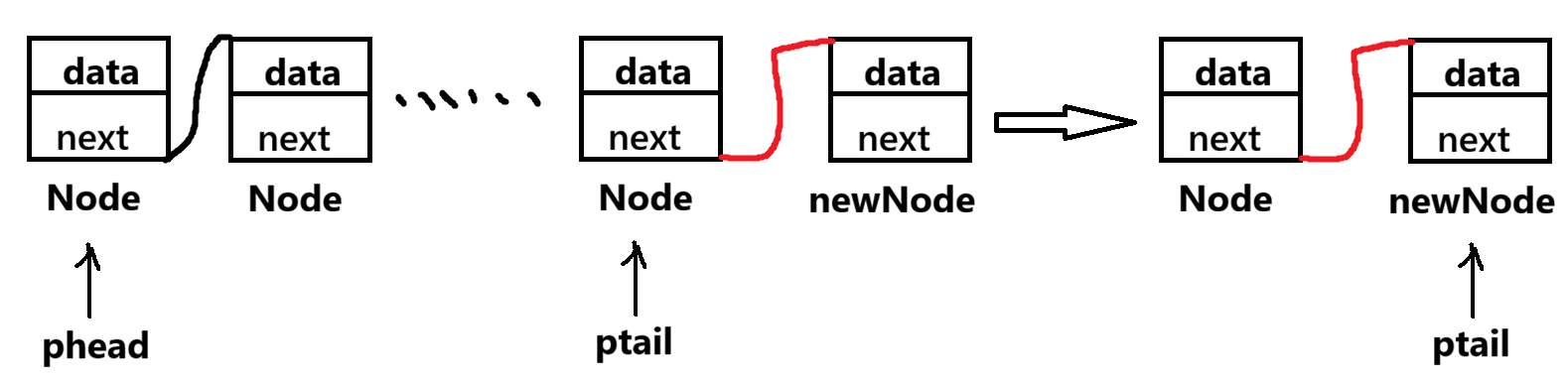 ptail->next = newNode;