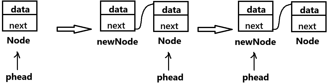 newNode->next = *pphead; //连接新新节点与头指针