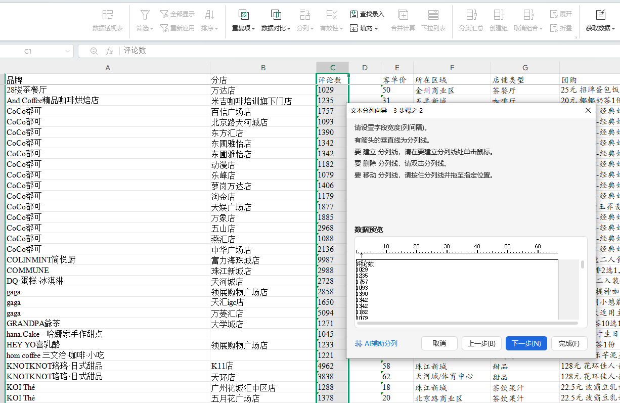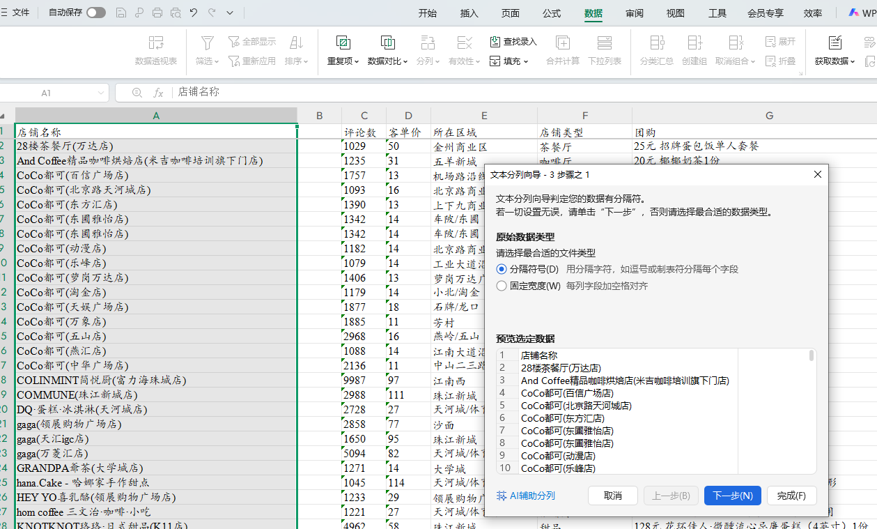 先在要分列的那一列右边插入一列-数据-分列-分隔符号