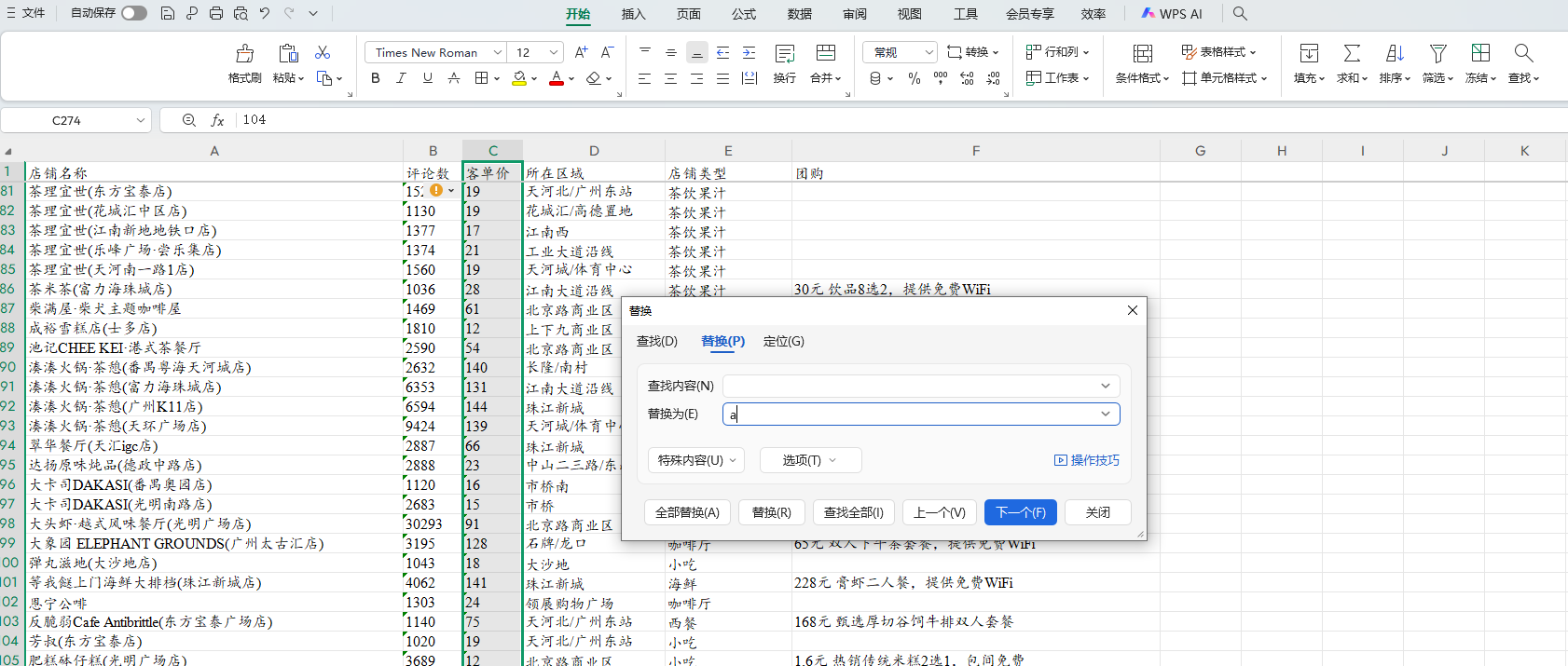 开始-查找-替换-先将所有含符号的空白替换为一个字符