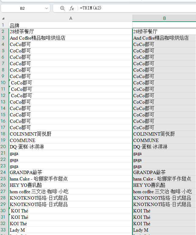 其中虽然显示空白,但有其他制表符,这时直接定位空值无法定位到,可以在前面加上以下操作: