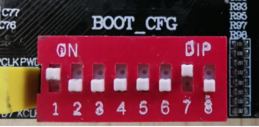 固化完成后,将拨码开关拨至 eMMC 启动方式 10100110,启动系统即可。