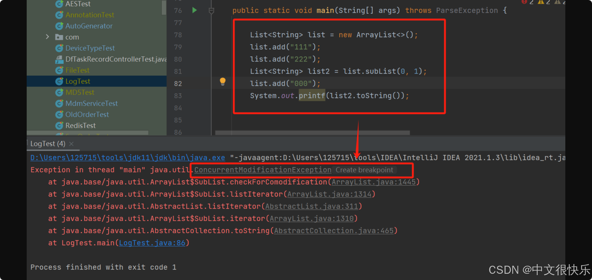 在 subList 场景中,高度注意对父集合元素的增加或删除,均会导致子列表的遍历、增加、删 除产生 ConcurrentModificationException 异常。