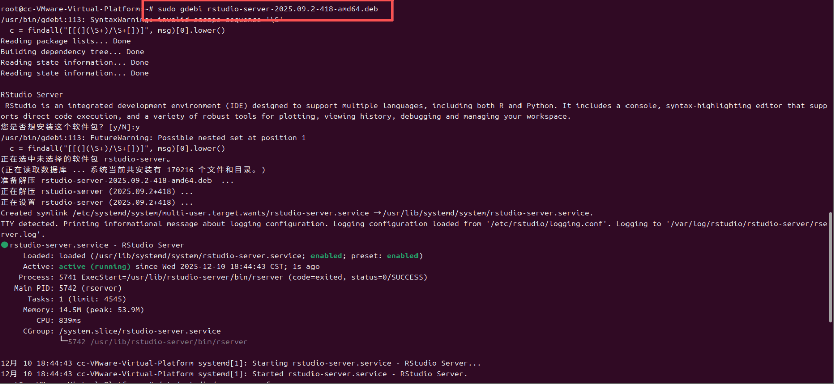 sudo gdebi rstudio-server-2025.09.2-418-amd64.deb