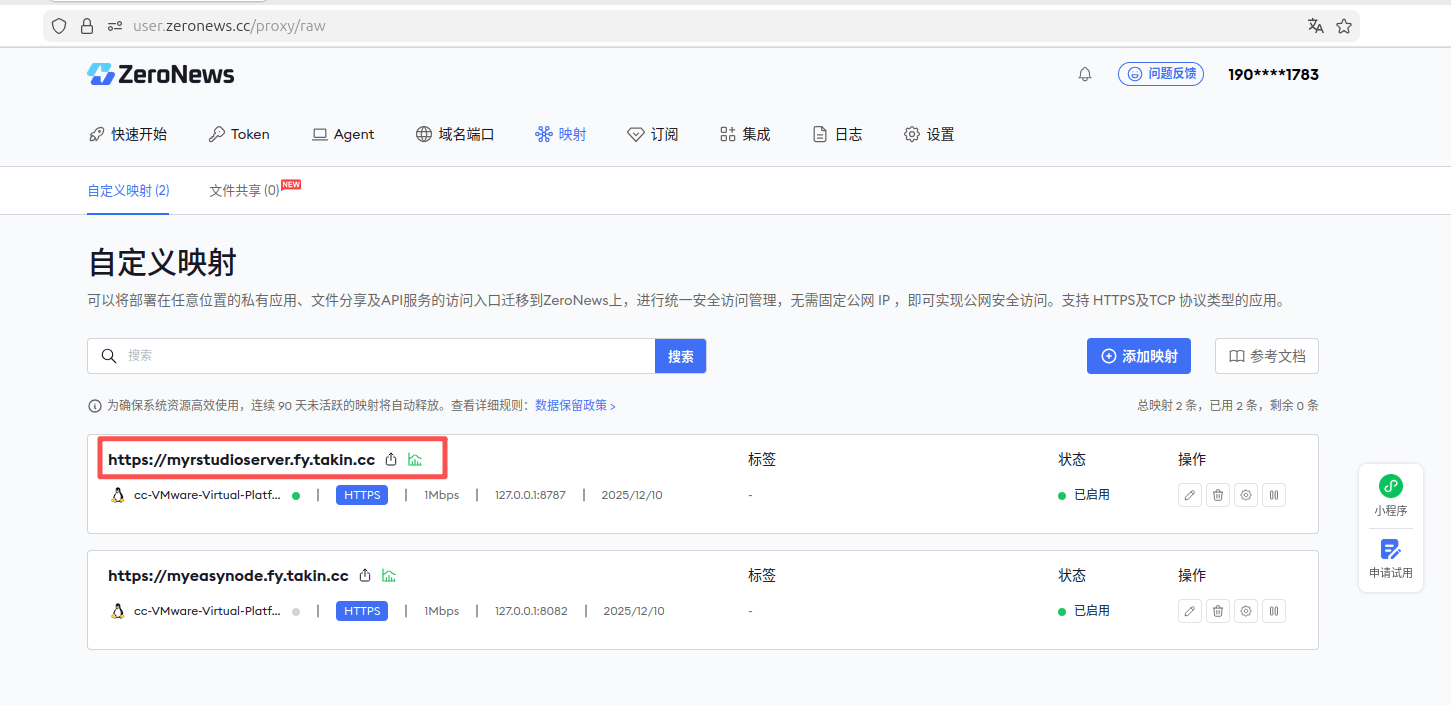 5、 按照上述步骤创建完成之后,我们就可以得到一条可公网访问的映射域名