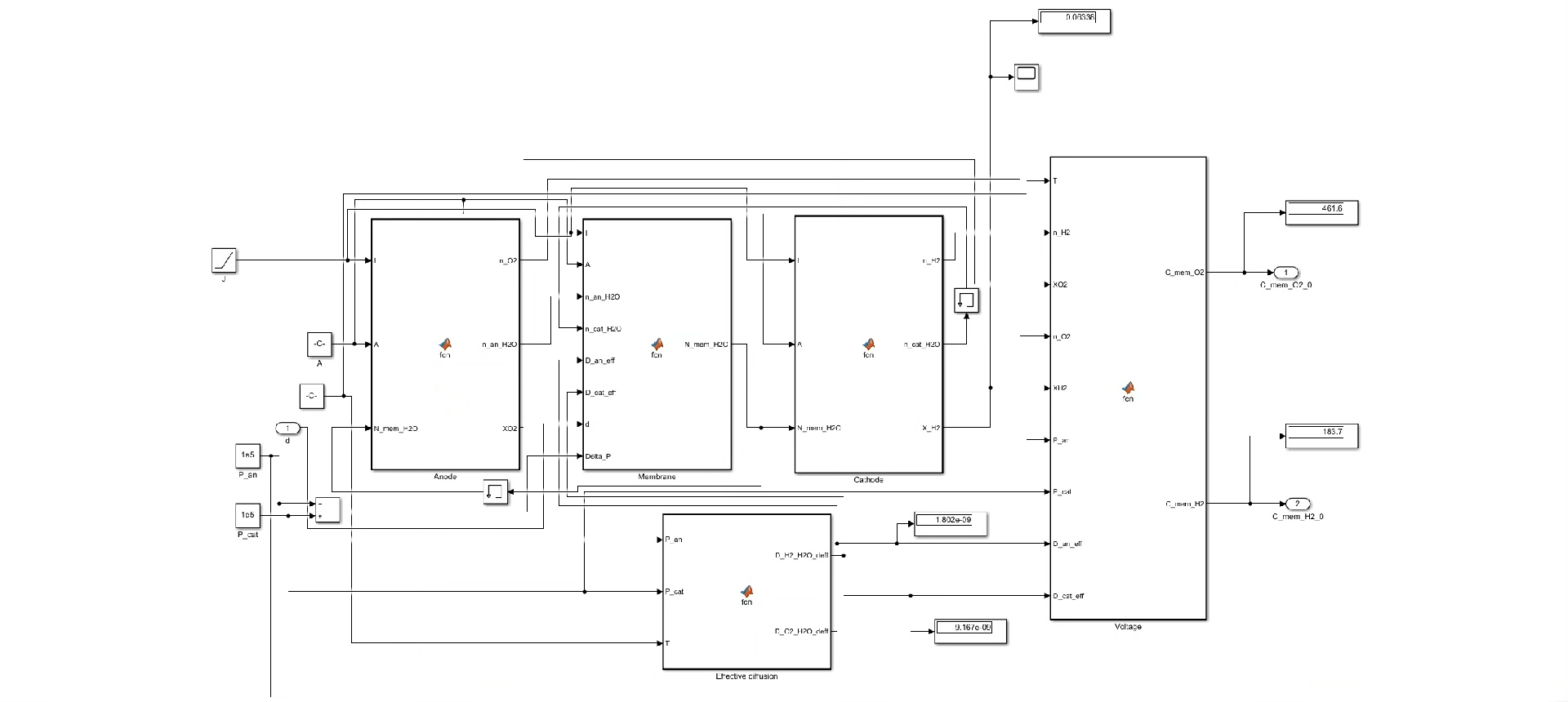 搞PEM电解槽仿真的时候,最头疼的就是调参调得怀疑人生。今天咱们用Simulink模型掰开揉碎了看,到底哪些参数能左右电解槽的电压表现。先放个暴力结论:电解电压=能斯特电动势+三大过电势(欧姆、传质、活化),每个都能被参数拿捏得死死的。