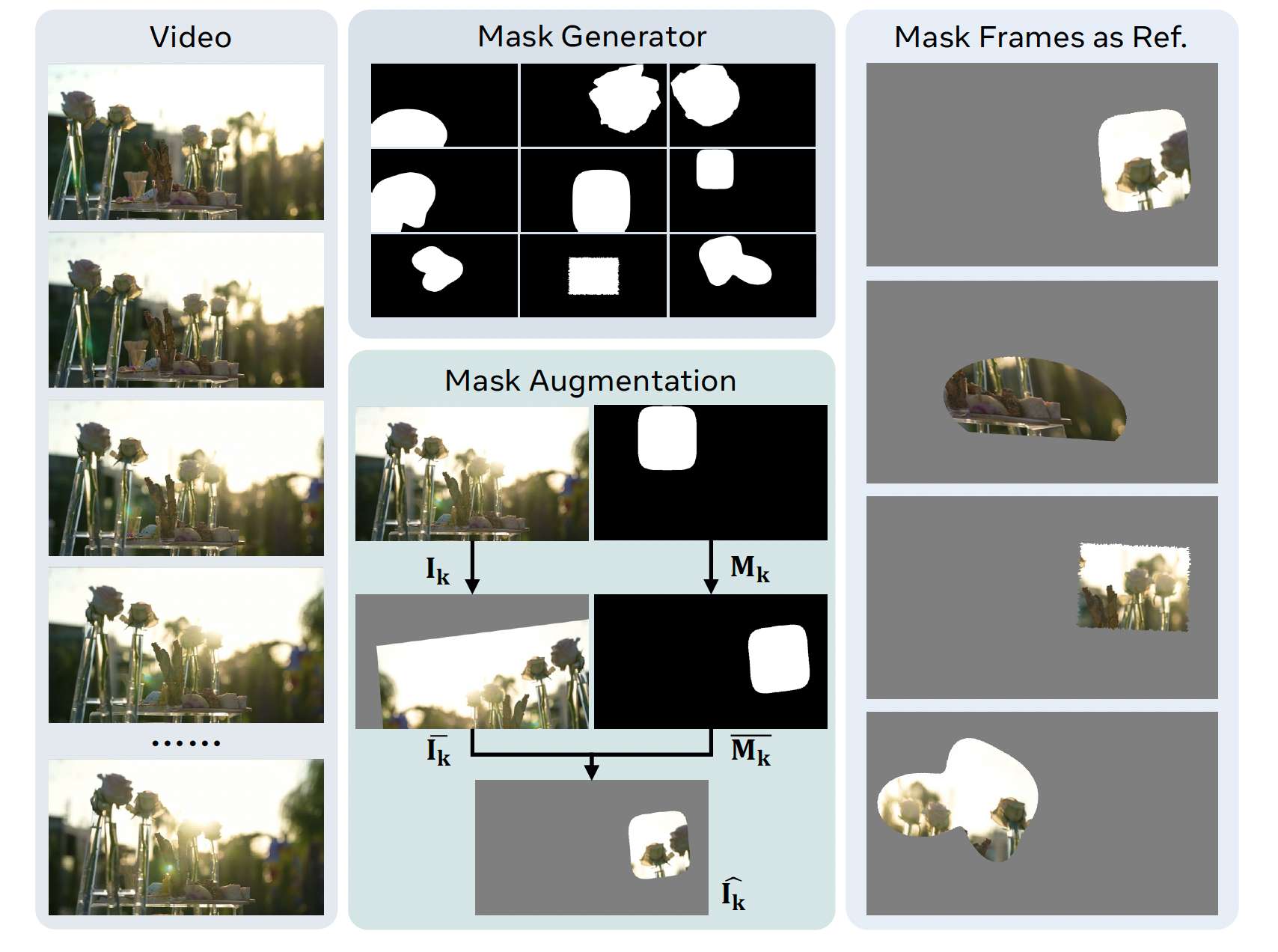 得到。重复这一过程,即可构造出完整的 K K K 个掩码帧集合 { I ^ k } k = 1 K \{\hat I_k\}_{k=1}^K {I^k}k=1K,作为参考条件使用。