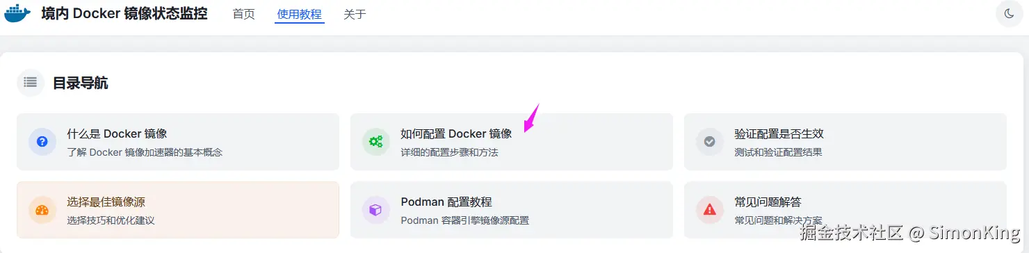 境内 Docker 镜像状态监控直观的为大家呈现了众多镜像源的状态,不仅提供了状态看板,还提供了详细的配置教程。是国内容器部署开发者必须要收藏的网站。