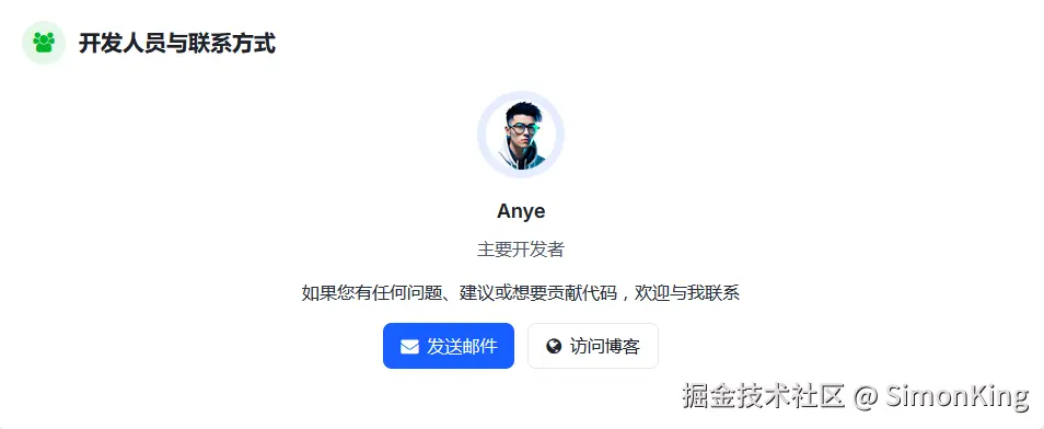 Anye是网站的主要开发者。