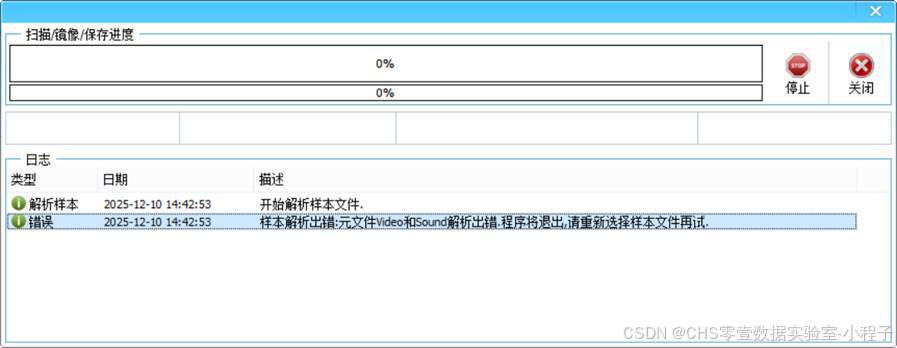 可以看到在高级版解析样本时会报如图1的错误,这个错误导致程序无法扫描,一般报这种错误的大多数都是结构体存在异常的"非标准"MP4文件。