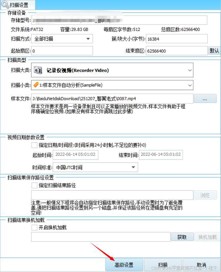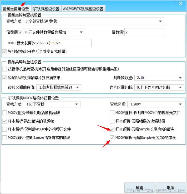 那么如何解决"非标"MP4文件的报错问题呢?下边的操作方法适用于CHS零壹视频恢复程序标准版、专业版、高级版,我们在扫描时点击"高级设置",然后勾选以下两项(图3)。