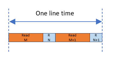 行时间是指sCMOS相机传感器读取并复位单行像素数据所需的时间,行时间是理解曝光时间、帧率和时序行为的关键参数。一个行时间的时序图通常包含Read和Reset两个阶段,不同行之间时序结构一致。