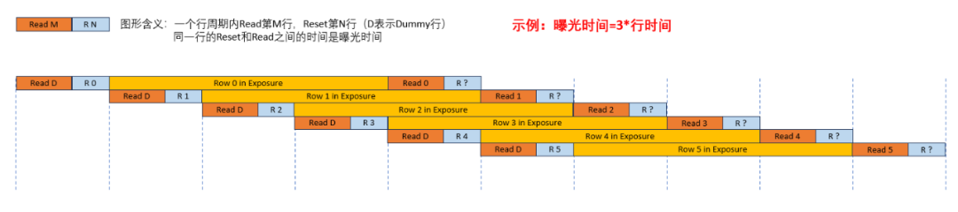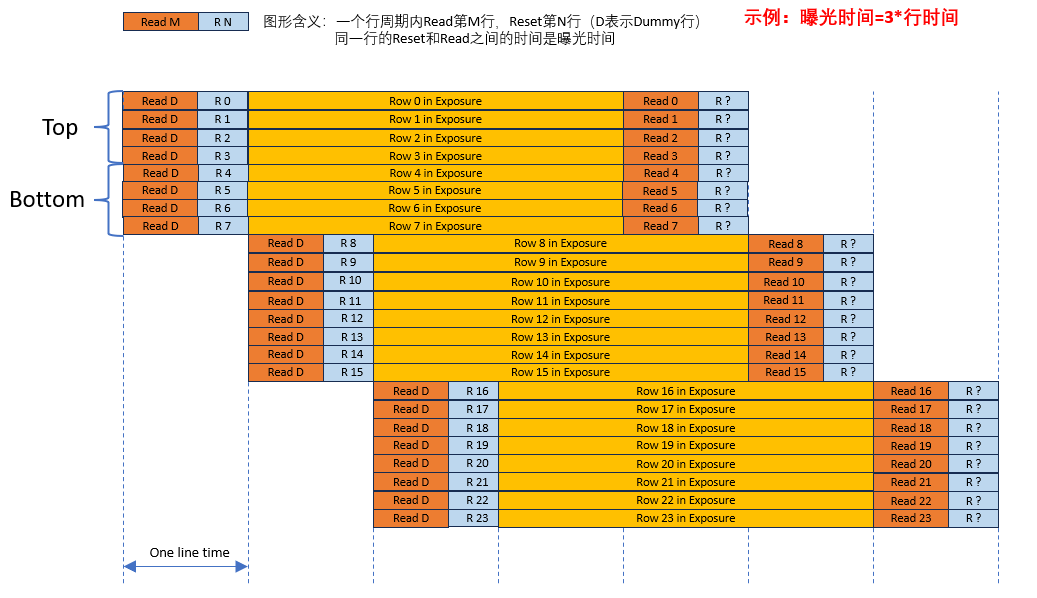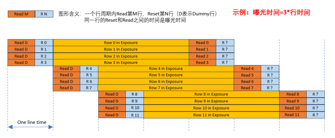 如果Reset Address和Read Address之间间隔了多个行时间,则曝光时间就等于 Exp_init + N * line_time。