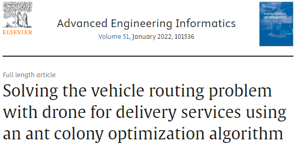 1\] Huang S H, Huang Y H, Blazquez C A, et al. Solving the vehicle routing problem with drone for delivery services using an ant colony optimization algorithm\[J\]. Advanced Engineering Informatics, 2022, 51: 101536. ### 6.代码获取 xx ### 7.算法辅导·应用定制·读者交流 xx