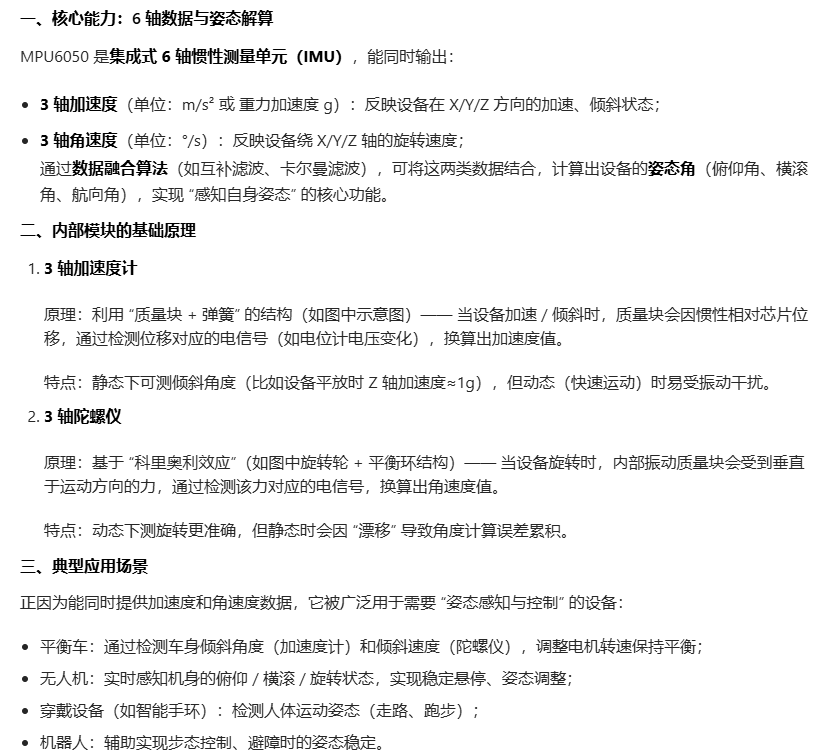 对于三轴加速度计来说是对于静态进行测速的,可以把三轴加速度计想象成 "一个装着小球的透明正方体盒子":这个盒子的上下两面对应 X 轴的正负方向,前后对应 Y 轴,左右对应 Z 轴。当盒子静止不动时,小球会稳稳待在盒子中心;一旦盒子朝某个方向倾斜、加速(比如拿起盒子往上抬),小球就会 "撞" 向对应的盒壁 ------ 通过看小球偏向哪个面,就能知道加速度是沿着 X/Y/Z 哪个轴产生的啦。