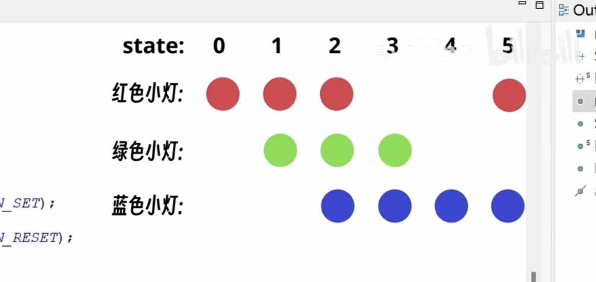 在while循环里为3个引脚设置循环闪烁条件(来源自KeyKing的教材内容)