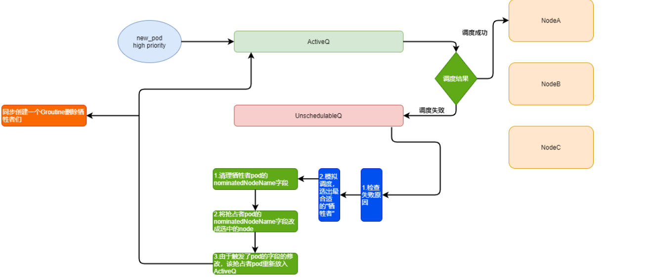 正常调度的pod会先放入activeQ, activeQ会经过正常的调度策略进行调度。