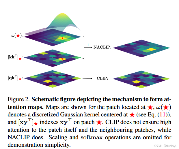 提出了一个高斯核,对于(i,j)的patch,对其注意力分数进行修正,靠近该位置的分数奖励高,远离的分数奖励低 ,与SCCLIP的KK自注意力进行叠加。