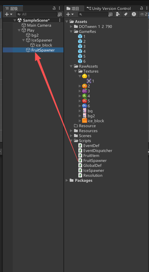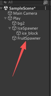 新建空游戏对象 FruitSpawner,与方块背景同一层级