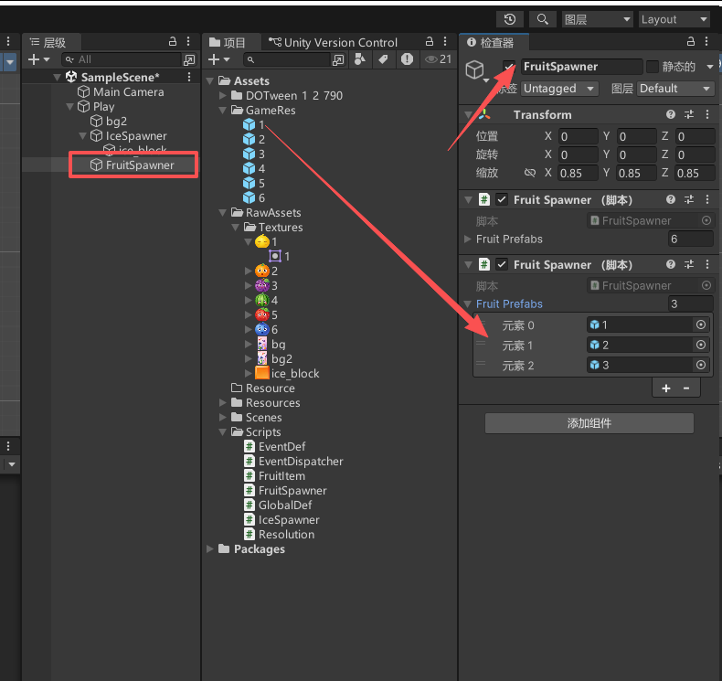 2、编写 FruitSpawner.cs 脚本 实现随机生成