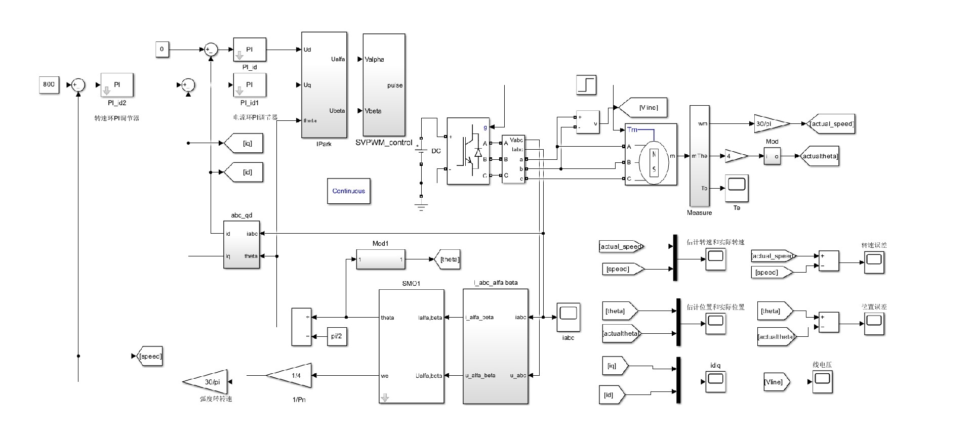- 《永磁同步电机滑模观测器的改进设计与仿真》 - 对滑模观测器的改进方法进行了深入探讨,包括滑模面设计和滑模增益调整等内容,与本文的部分模型搭建思路相契合。