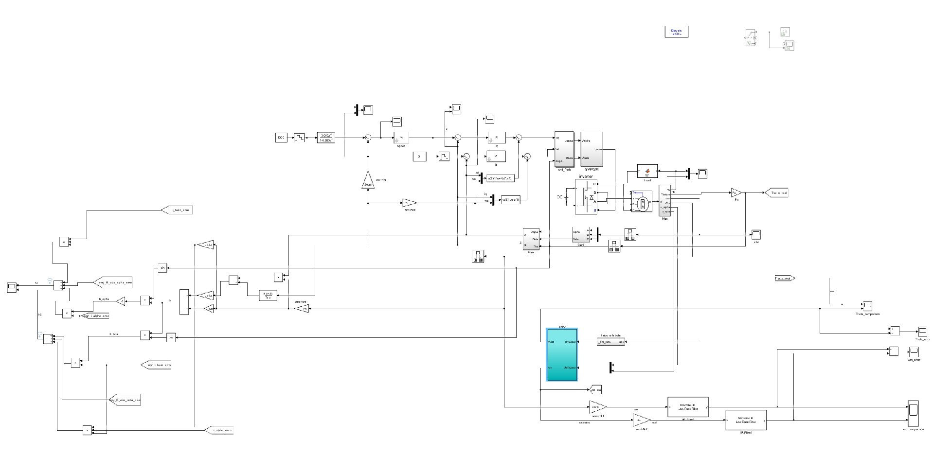 永磁同步电机滑模观测器simulink搭建模型(3种),附参考论文。 模型中有用锁相环或低通滤波器提取电角度和电角速度。