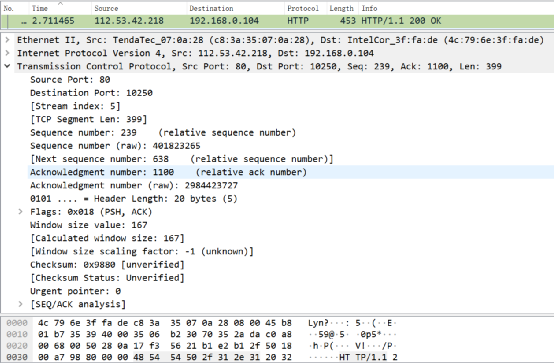 Ack =0:初始建立连接值为0,已经收到包的数量,表示当前没有接收到数据