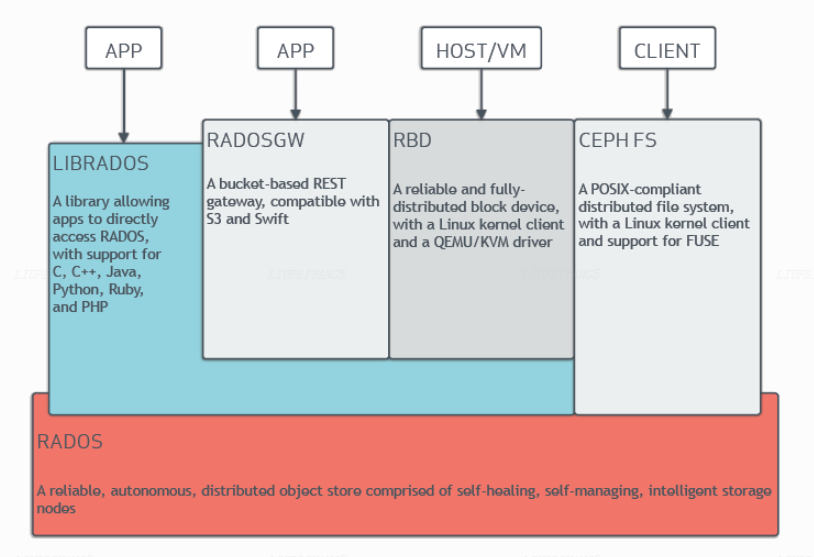 作为Ceph的对象存储网关,在Ceph的统一存储中(同时支持块、对象、文件三大功能)场景中,应用较多。RADOS-GW以其成熟稳定、扩展性强、支持多协议(S3、Swift)的优势,成为OpenStack生态的首选。因Ceph本身架构复杂、部署运维门槛高,单纯的使用对象存储一般不考虑选择。
