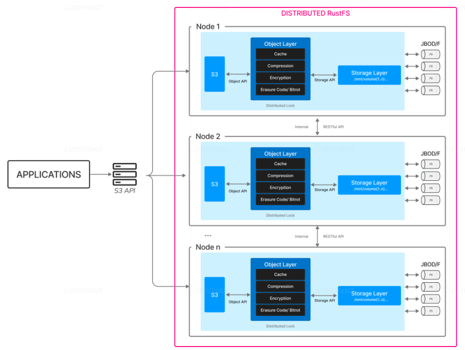 国人开发的,基于Rust语言开发的新型高性能对象存储,采用Apache2.0开源协议,兼容S3协议。全面对标MinIO,在小对象读写性能方面展现出巨大潜力,代码质量和安全性有保障。随着MinIO转向商业化,RustFS在2025年迎来爆发式热度,目前仍处于1.0.0-alpha版本阶段。当前开源版本生产环境受限使用,但对工业保密、国密设备和系统有明确适配,属于值得关注但需谨慎评估的技术前瞻项目。
