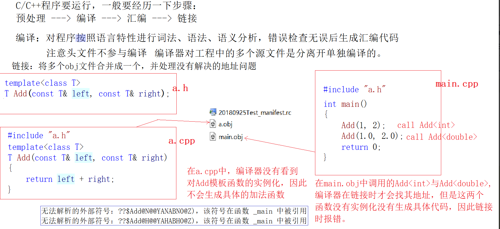 - 模板定义的位置显式实例化。这种方法不实用,不推荐使用。