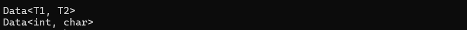 Data() {cout<<"Data<T1, T2>" <<endl;}