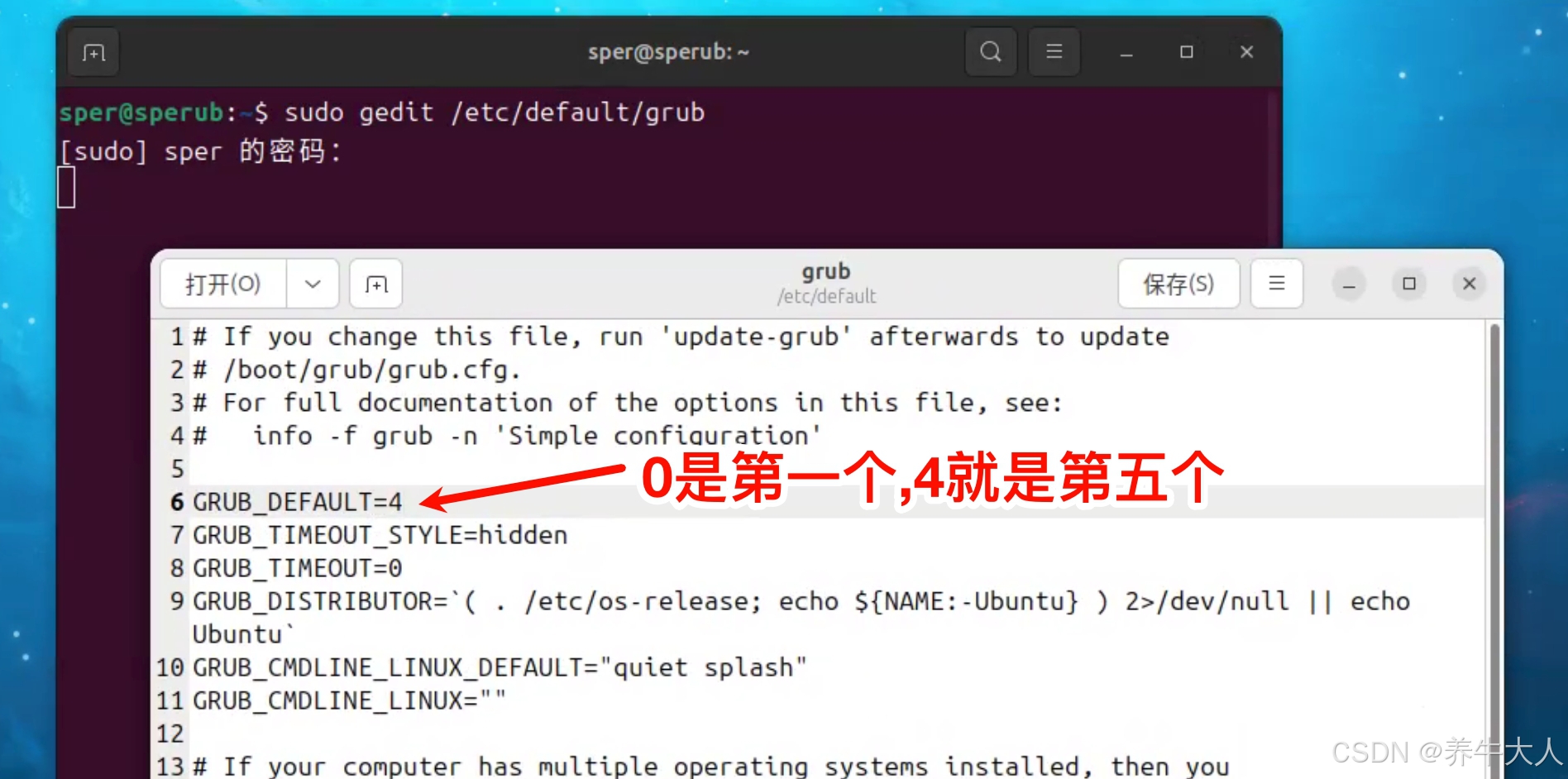 修改 GRUB_DEFAULT 的值从0开始计数,修改后点保存
